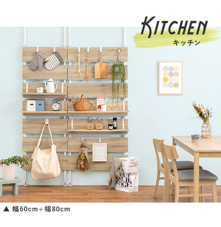 突っ張り棚 幅60cm つっぱり ラック おしゃれ 北欧 突張り 収納 棚 パーテーション 間仕切り ウォールシェルフ 壁 引っ掛け 引掛け 高さ調整 調節 段差 伸縮 木製 壁面収納 キッチン 玄関(代引不可)