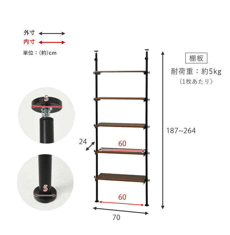 つっぱり ラック 幅70 突っ張り棚 収納 おしゃれ 木目 突っ張り棒 棚 伸縮 調節 壁面収納 間仕切り 突っ張りラック 本棚 シェルフ スリム 白 ホワイト おしゃれ(代引不可)