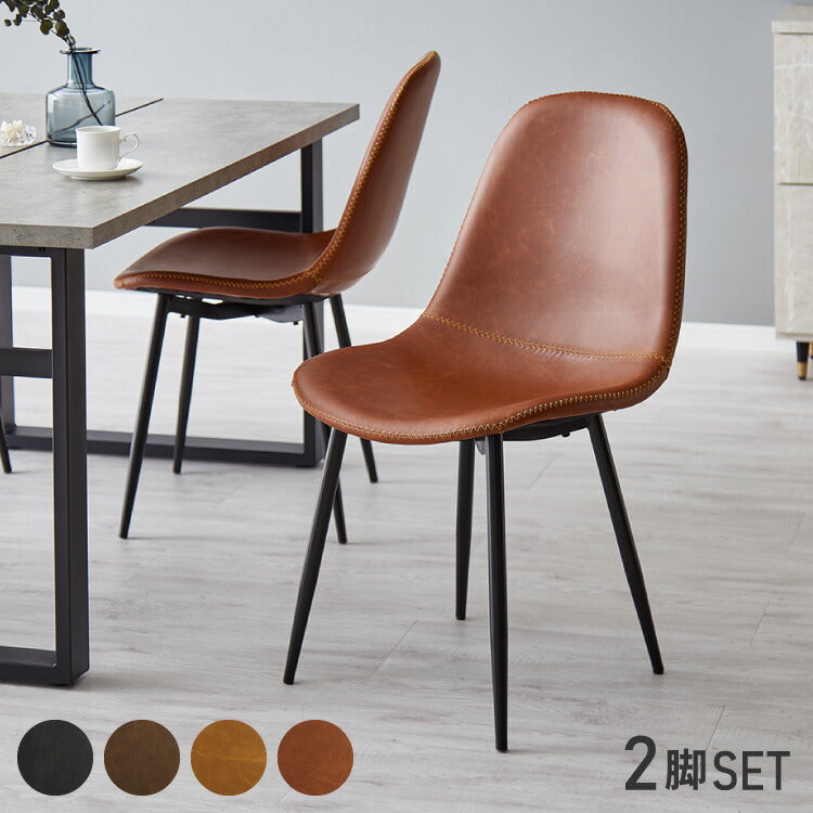 ダイニングチェア 2脚セット ヴィンテージ調 椅子 チェア 2脚組 PVCレザー 合成皮革 ステッチ スチール脚 モダン インダストリアル 北欧 おしゃれ お手入れ簡単 食卓椅子 食卓チェア 幅48 座面高43cm(代引不可)