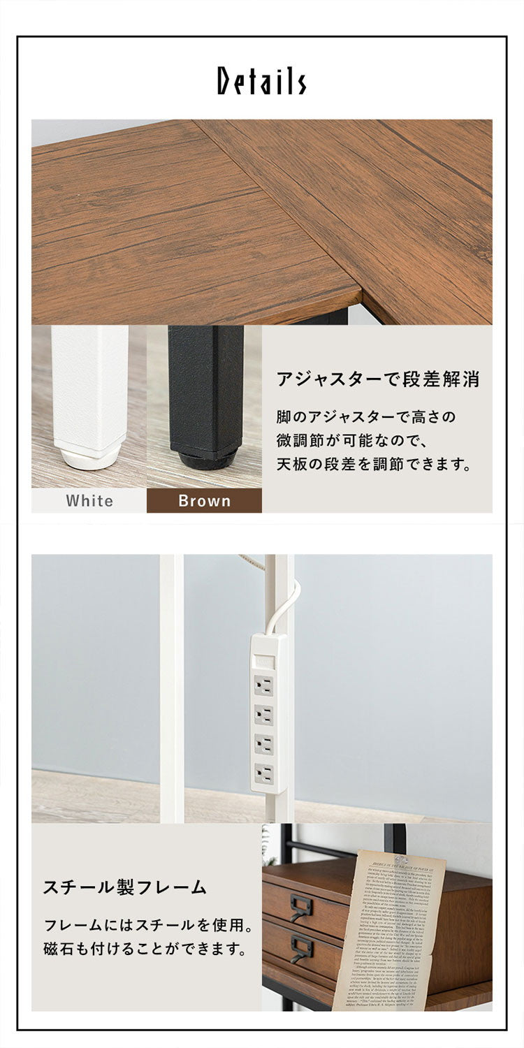 フレーム:スチール、天板・座面・棚板:合成樹脂化粧繊維板(塩化ビニル)