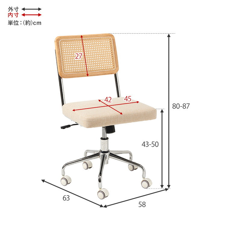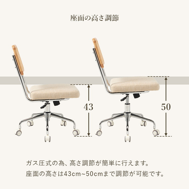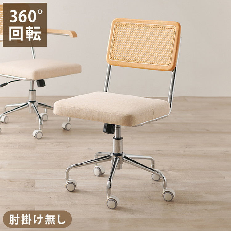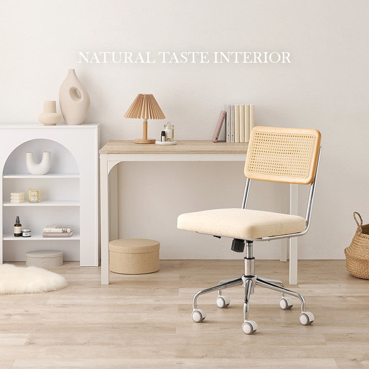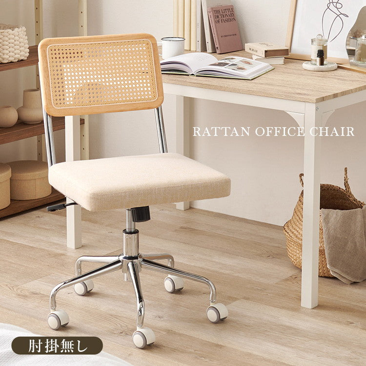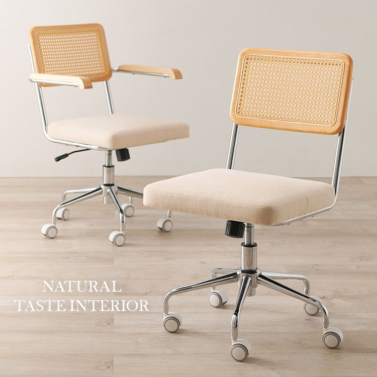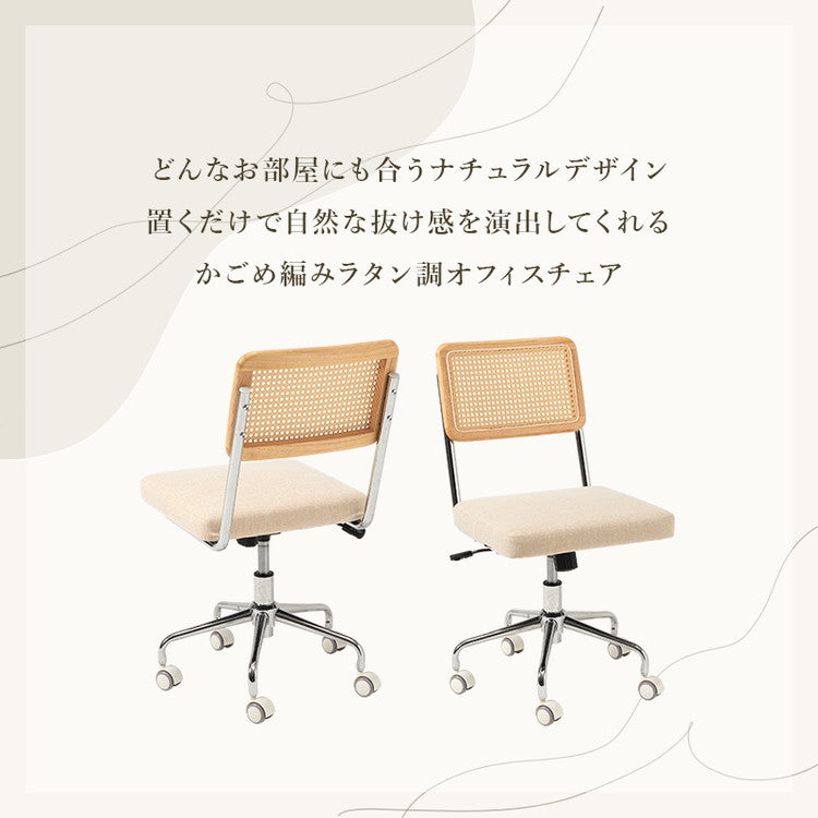 置くだけで自然な抜け感を演出するナチュラルテイストのラタン調オフィスチェア。