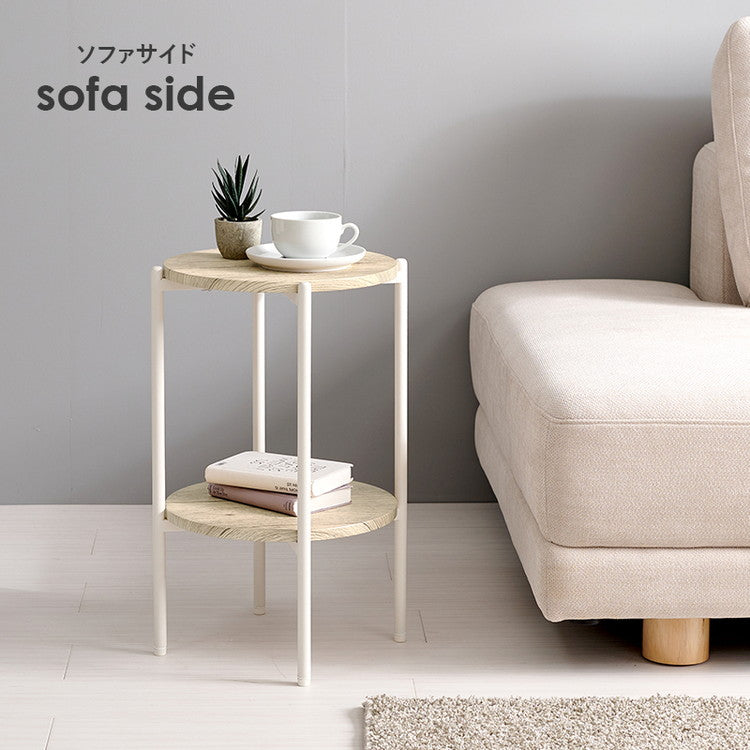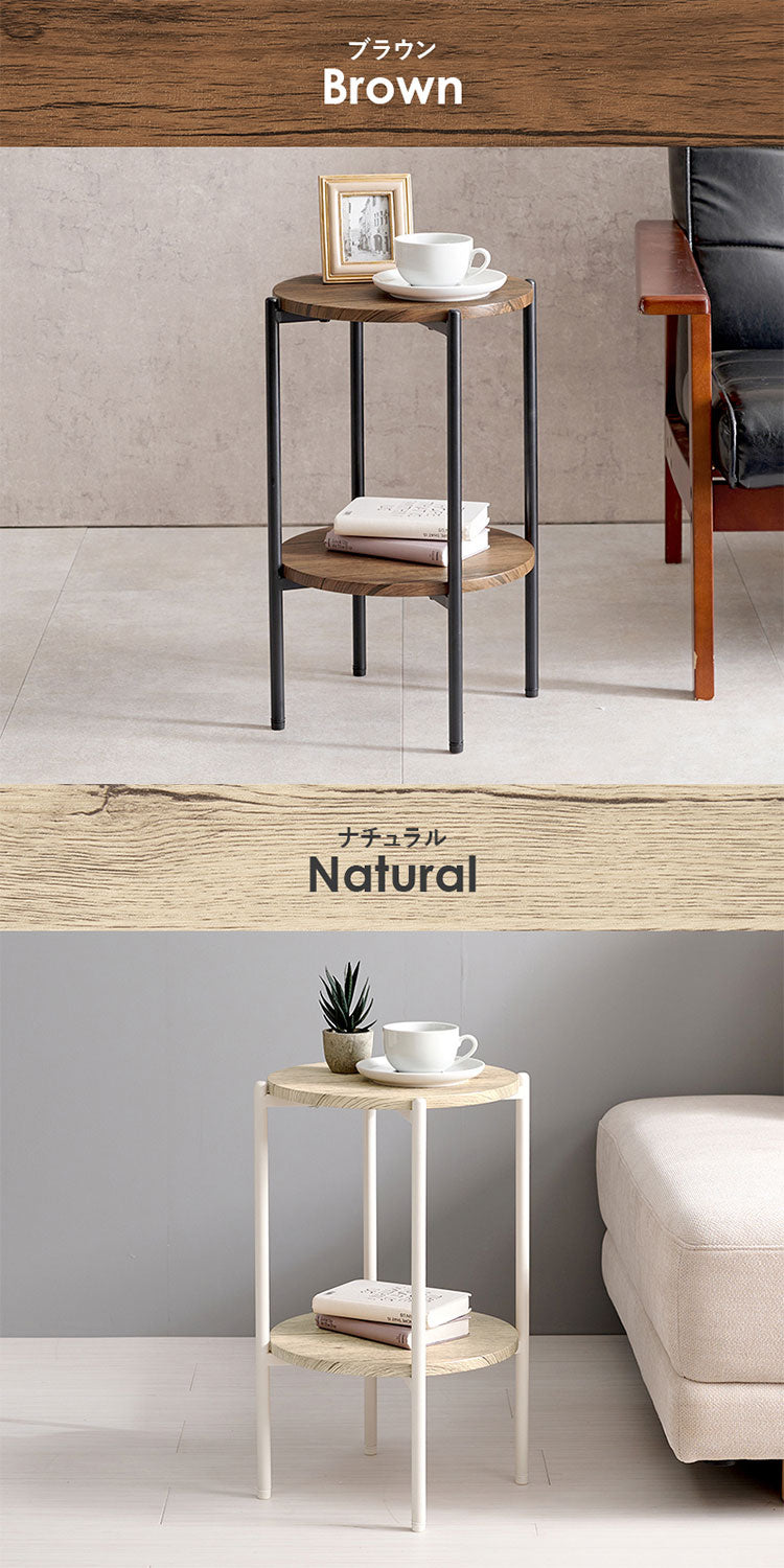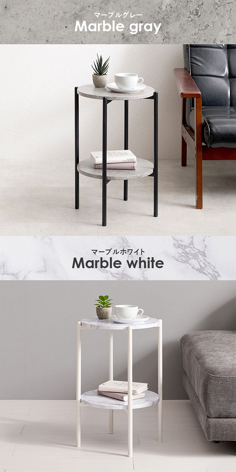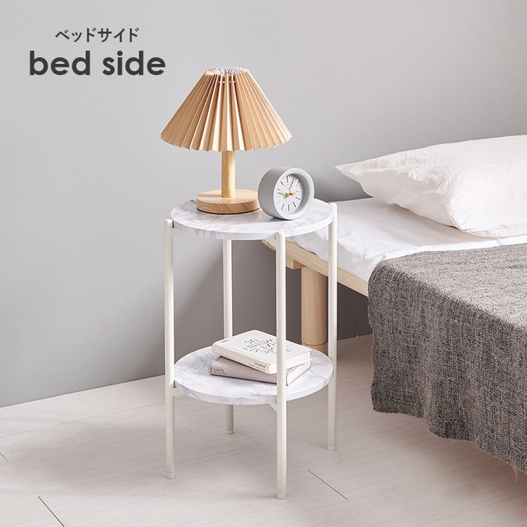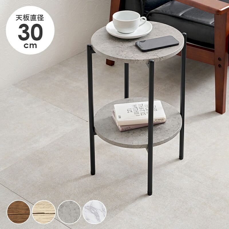 サイドテーブル 大理石調 木目調 直径30cm 円形 丸テーブル 棚付き ラック テーブル ソファサイド ベッドサイド マーブル調 コンクリート調 北欧 おしゃれ(代引不可)