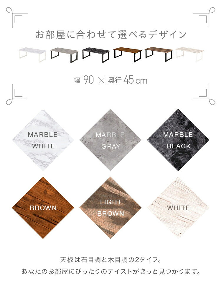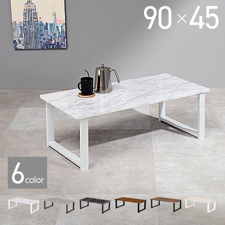 センターテーブル おしゃれ 大理石柄 スチール脚 90×45 マーブル モノトーン 木目調 韓国インテリア 北欧 モダン ヴィンテージ ローテーブル リビングテーブル コーヒーテーブル 白 ホワイト テレワーク 一人暮らし (代引不可)