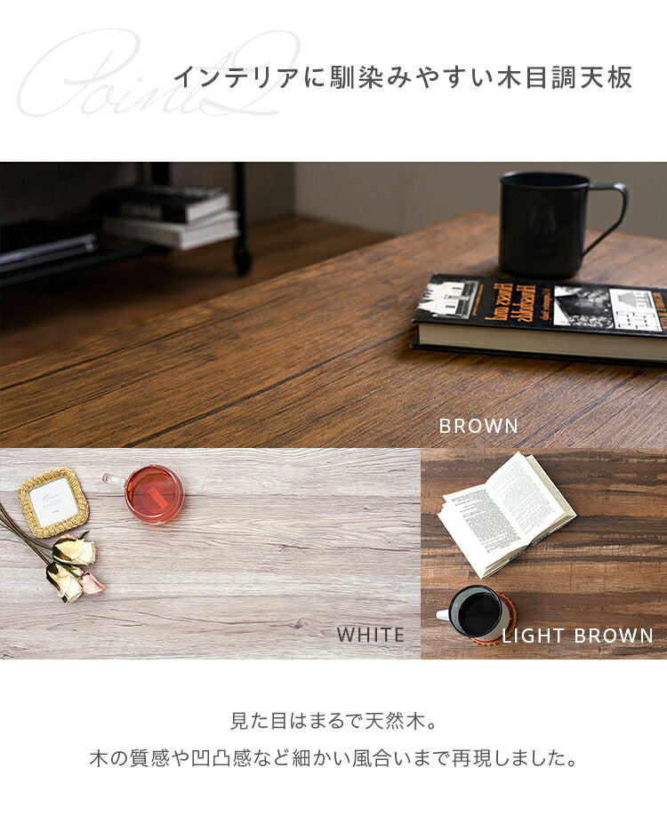 インテリアに馴染みやすく木の風合いを再現した木目調の2タイプ。