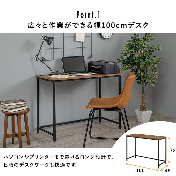 デスク 幅100cm 奥行45cm 2口コンセント ロングデスク PCデスク パソコンデスク 机 作業机 作業デスク プリンター台 プリンターラック スチール 北欧 おしゃれ(代引不可)
