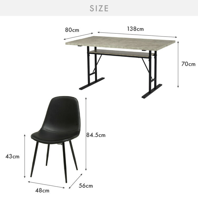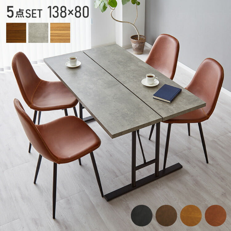 ダイニングテーブルセット 4人掛け 棚付き T字脚 テーブル チェア4脚 ダイニング5点セット ダイニングセット ダイニングテーブル 省スペース コンクリート調 木目調 おしゃれ 幅138 奥行80(代引不可)