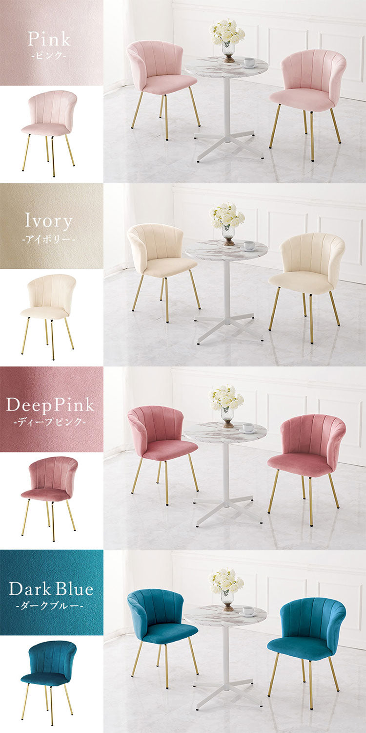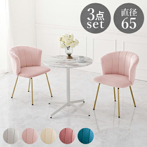 ベロア調生地のチェアと、リアルな大理石調天板のカフェテーブルを合わせた上品で大人かわいい3点セット。