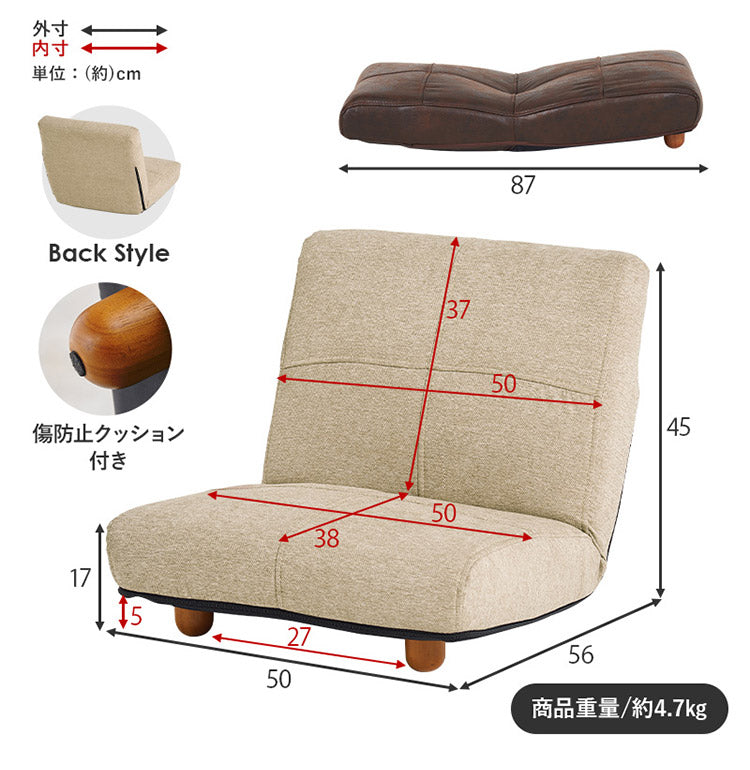 前脚付き座椅子 背もたれリクライニング 42段階 省スペース 1P 一人掛け 椅子 イス チェア ロータイプ おしゃれ(代引不可)