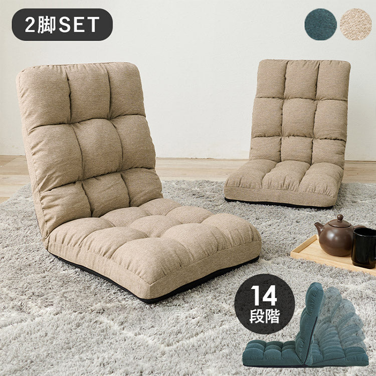 2脚セット コンパクト座椅子 背もたれリクライニング 14段階 ファブリック座椅子 1P 一人掛け 椅子 イス チェア ロータイプ おしゃれ(代引不可)