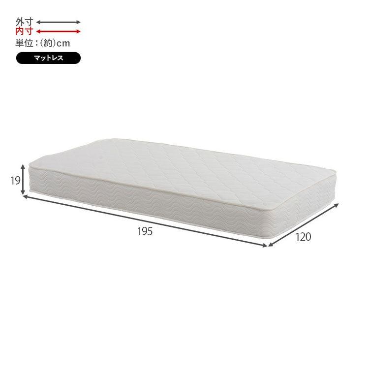 ベッド:(約)幅124×奥行211×高さ82×床面高31cm、マットレス:(約)幅120×奥行195×高さ19cm