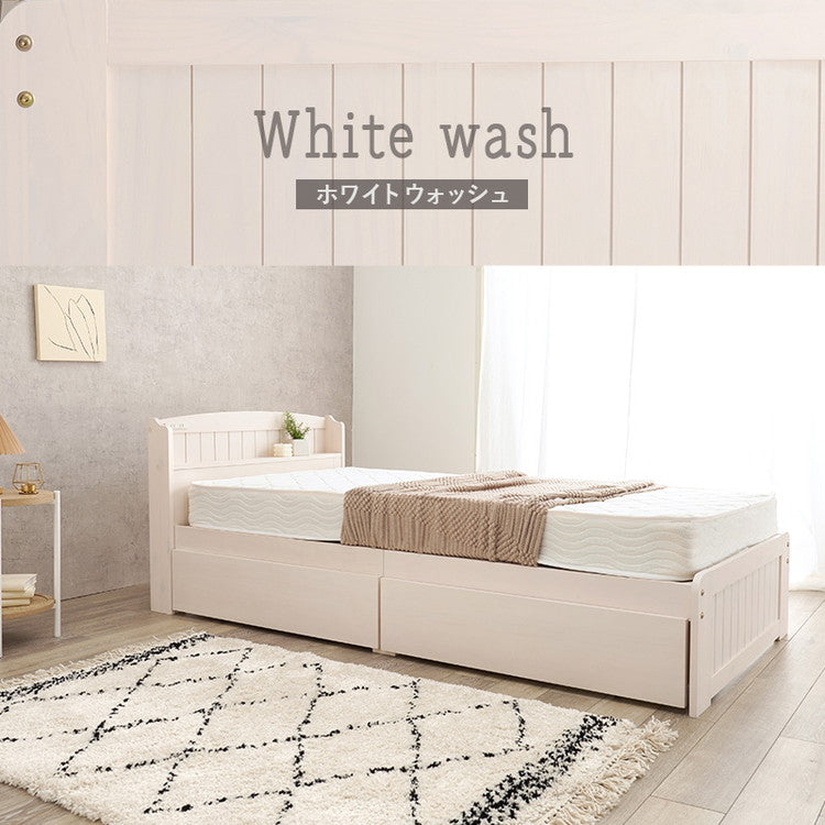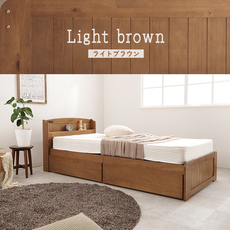 大容量引出し収納付き すのこベッド シングル 宮棚付き ベッド下 収納 カントリー調 チェストベッド ベッドフレーム 天然木 木製 北欧 おしゃれ(代引不可)