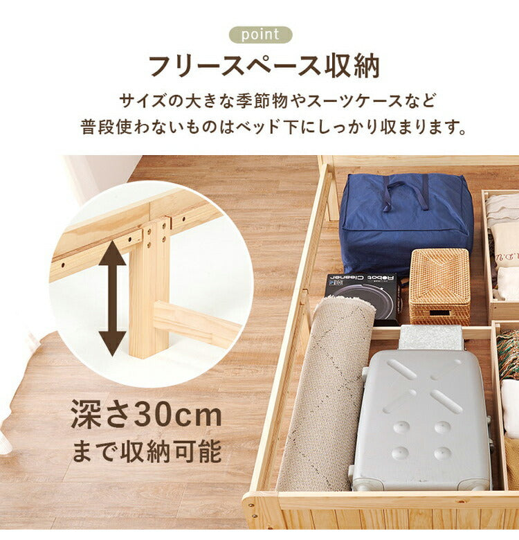 大容量引出し収納付きの天然木すのこベッド。独立したバネが体型に合わせて沈みこむポケットコイルマットレスセット