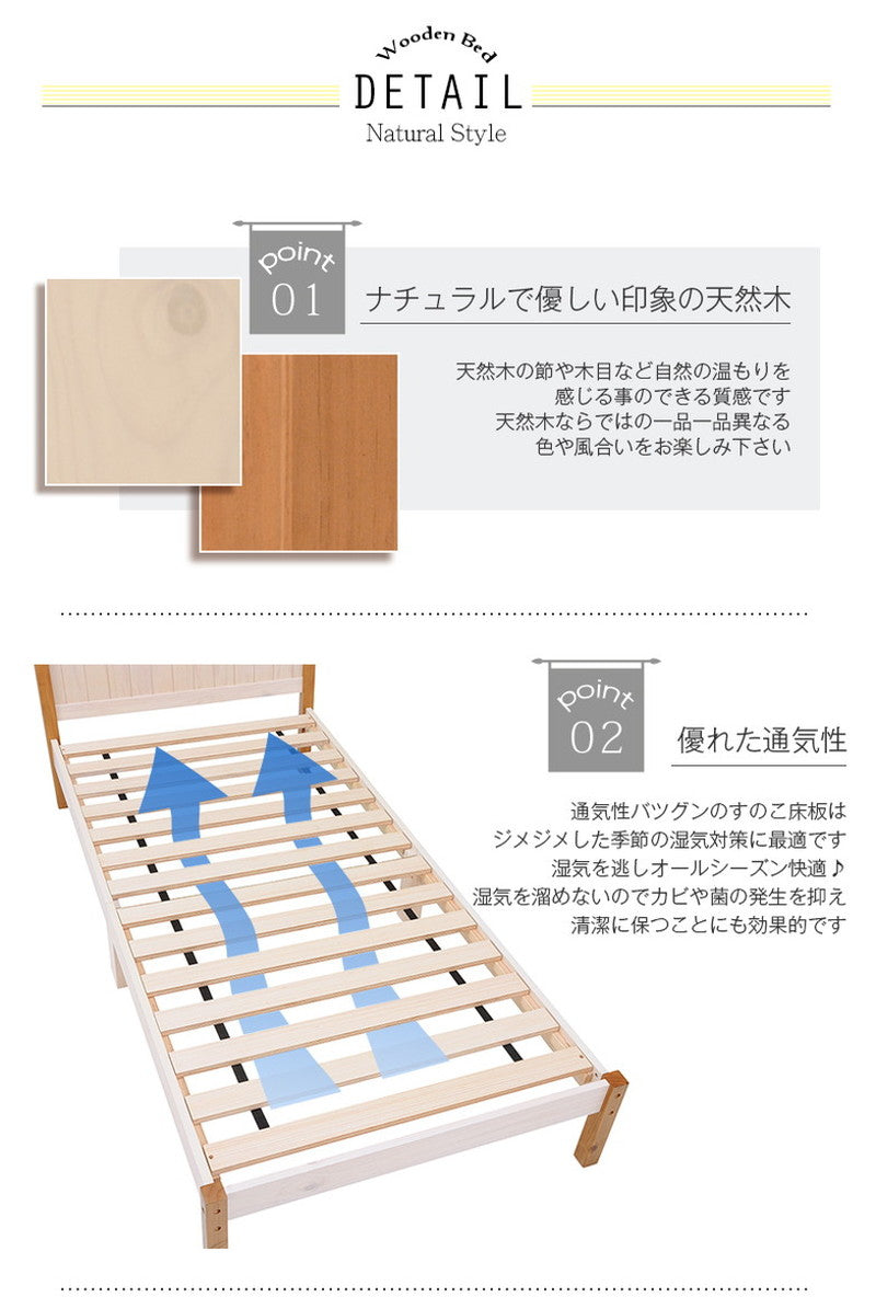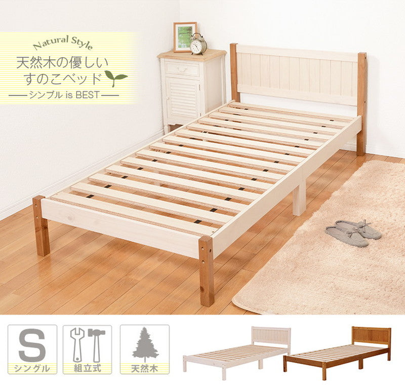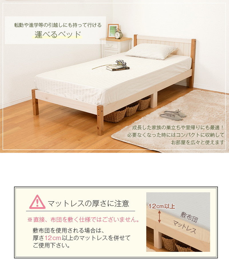 カントリー調 ベッド すのこベッド シングル ベッドフレーム 天然木 パイン材 ナチュラル ツートン かわいい おしゃれ(代引不可)