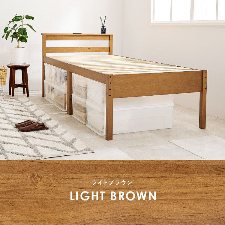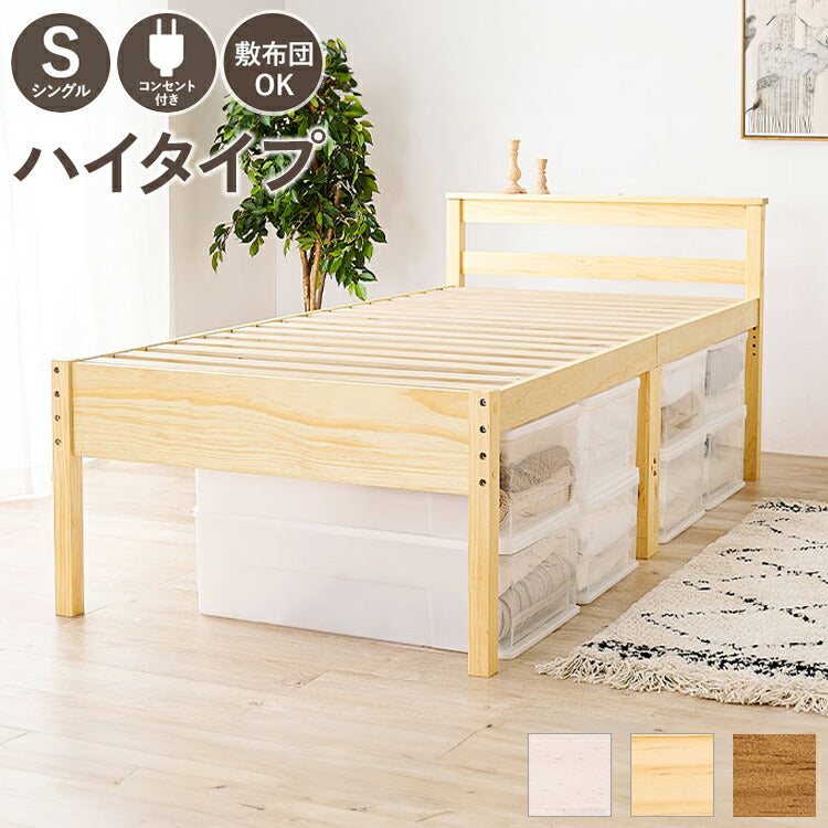 すのこベッド シングル 耐荷重200kg 天然木 ミドルベッド 高さ調節 3段階 大容量 収納スペース 2口コンセント付き 敷布団・マットレス対応 頑丈 ベッドフレーム おしゃれ(代引不可)