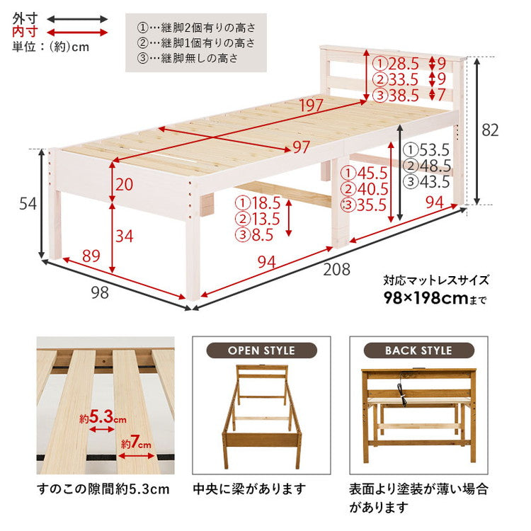 (約)幅98×奥行208×高さ82×床面高43.5/48.5/53.5cm