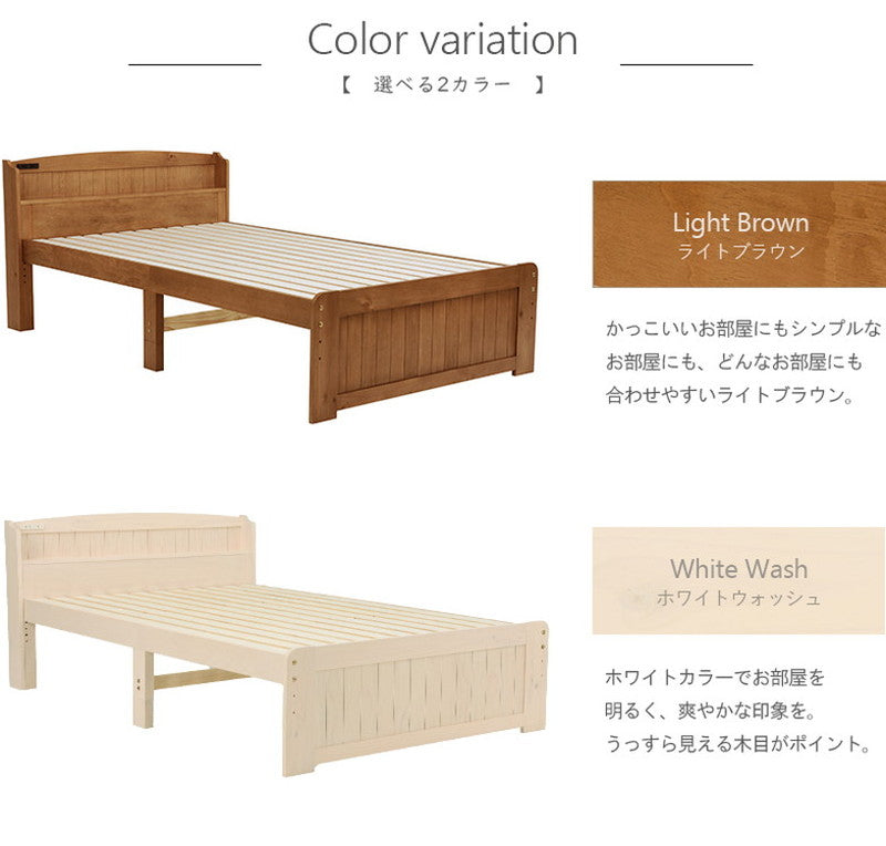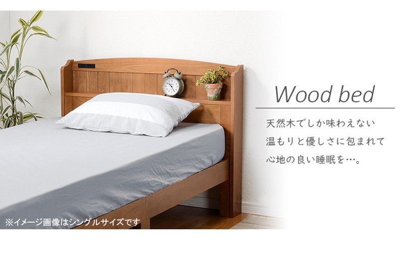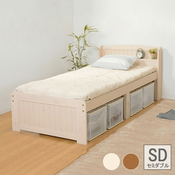 カントリー調 ベッド すのこベッド セミダブル 棚コンセント付き ベッドフレーム 高さ調節 宮棚付き 宮付き セミダブルベッド ナチュラル かわいい おしゃれ(代引不可)