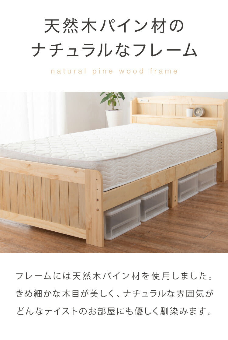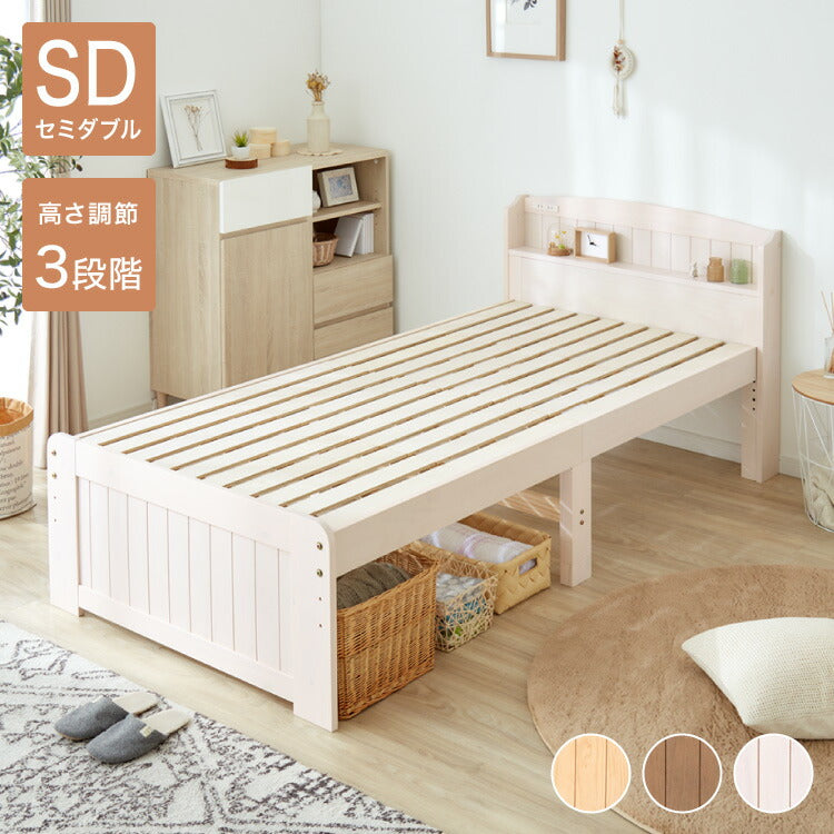 高さ3段階 カントリー調 すのこベッド セミダブル 棚コンセント付き 耐荷重150kg 天然木 ベッドフレーム 棚付き 宮棚付き 宮付き 敷布団OK パイン材 白 ホワイト 可愛い かわいい ベッド下収納 北欧(代引不可)