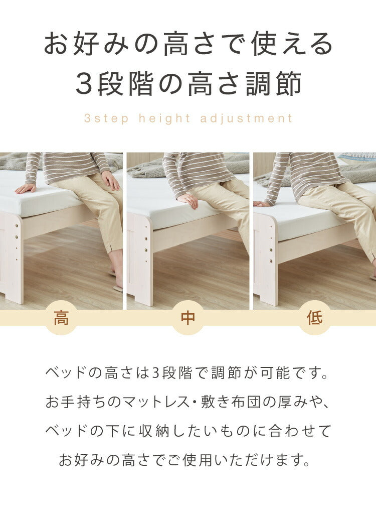 マットレスや布団の厚み、ベッド下に収納する物に合わせて、お好みの高さに調節できます。