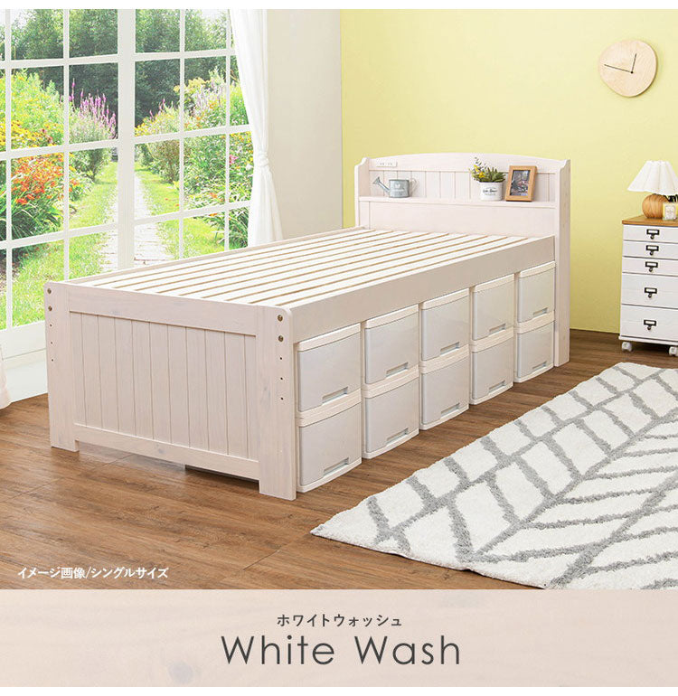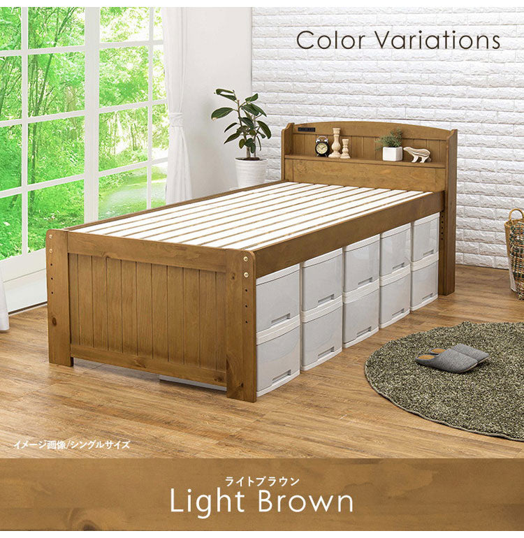 床面高さが4段階に変えられ、床面下に大容量収納が可能。頑丈な造りの天然木すのこベッド。