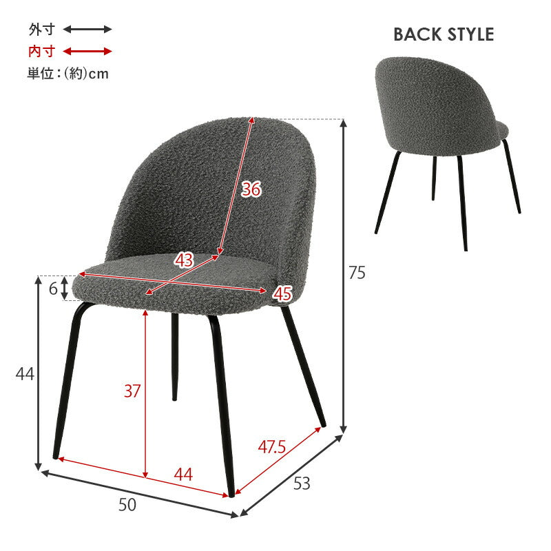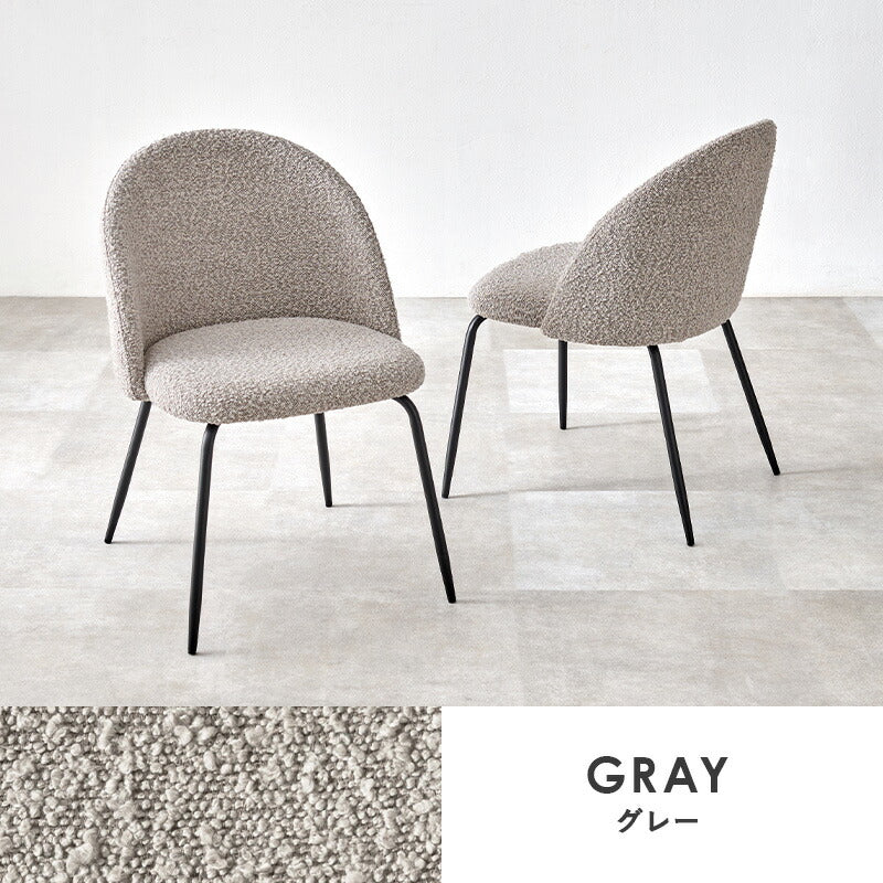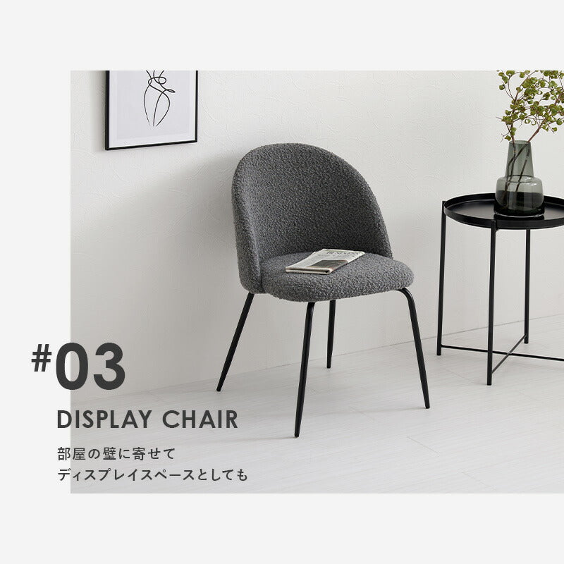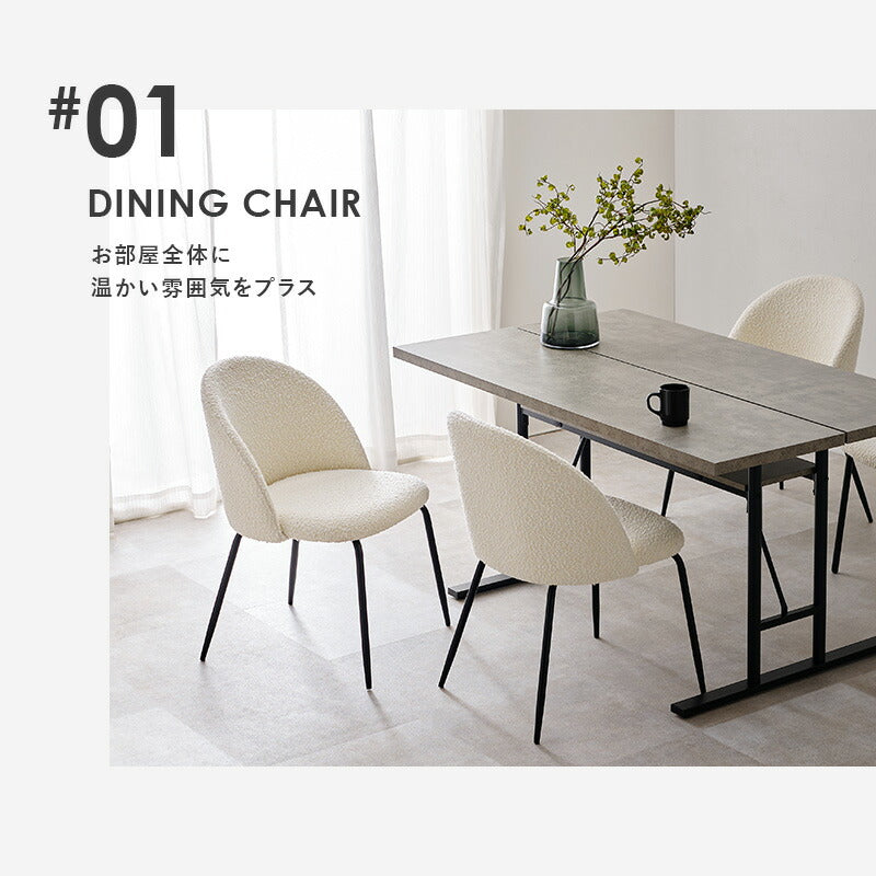 ぽこぽことした質感が特徴的なブークレ生地のダイニングチェア。細身のスチール脚と合わせてスッキリしつつも温かみのある空間を演出します。