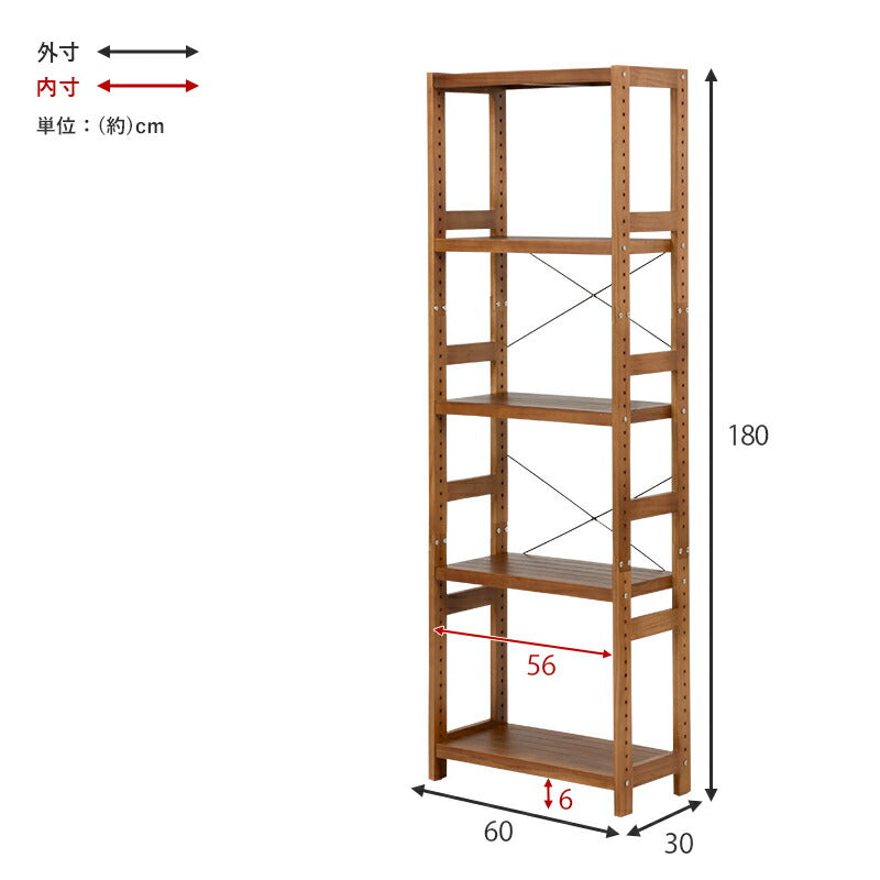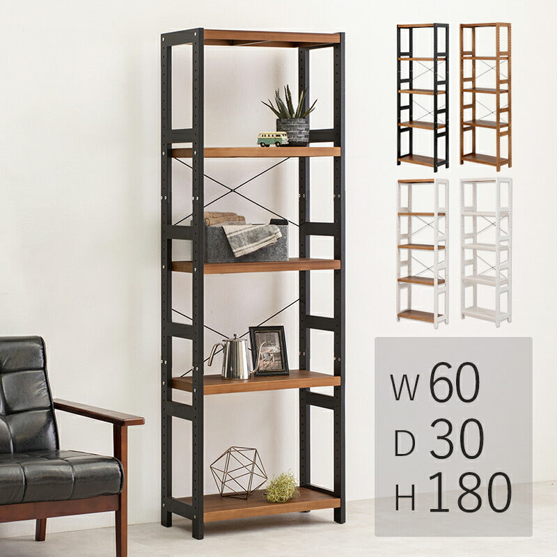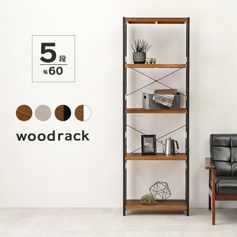 オープンラック 5段 幅60cm 木製 天然木 棚板高さ調節 魅せる収納 棚 シェルフ 北欧 フレンチカントリー調 かわいい おしゃれ(代引不可)