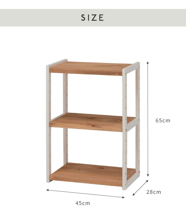 ラック オープンラック 3段 幅45cm 天然木 シェルフ 本棚 収納 ディスプレイ フリーラック カントリー調 多目的ラック(代引不可)