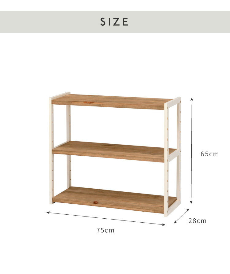 ラック オープンラック 3段 幅75cm 天然木 シェルフ 本棚 収納 ディスプレイ フリーラック カントリー調 多目的ラック(代引不可)