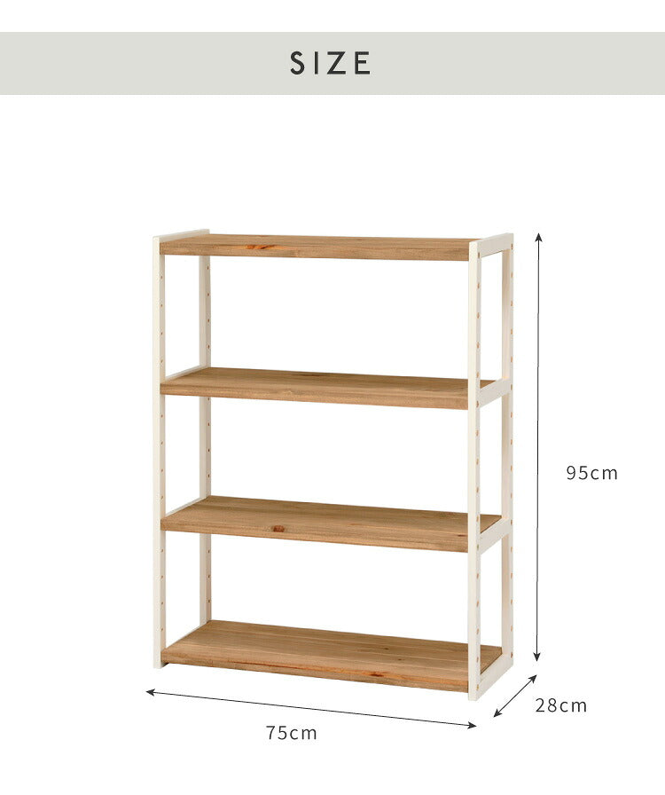 ラック オープンラック 4段 幅75cm 天然木 シェルフ 本棚 収納 ディスプレイ フリーラック カントリー調 多目的ラック(代引不可)