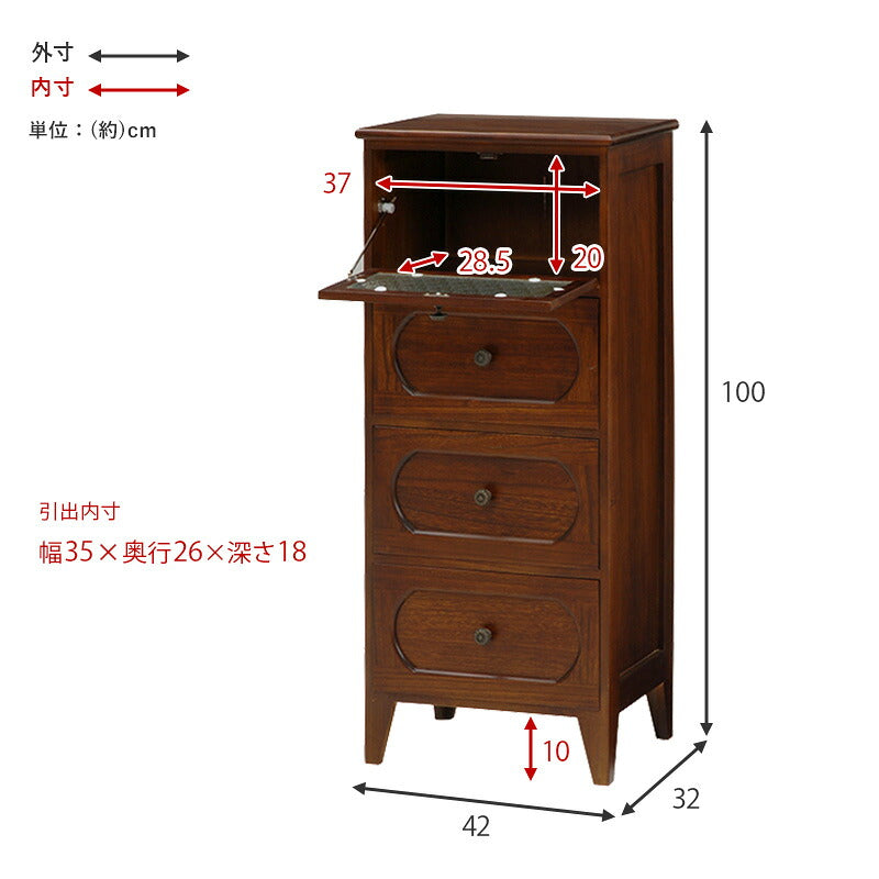 チェスト 幅42 完成品 4段 レトロガラス フラップ扉 引き出し収納 リビングチェスト リビングボード アンティーク レトロ モダン おしゃれ(代引不可)