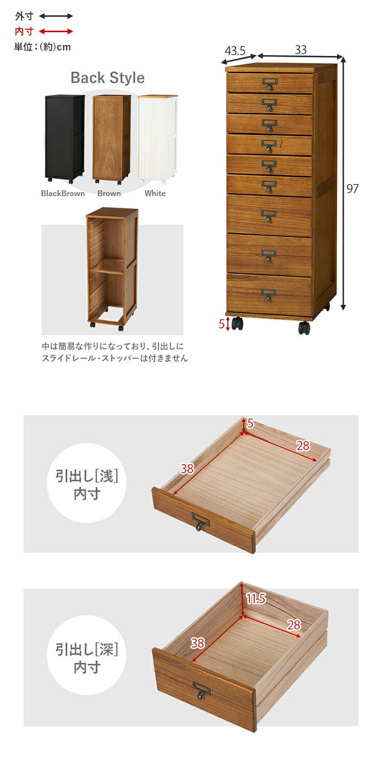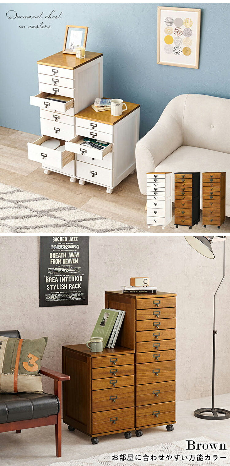 B4サイズ収納 書類チェスト 9段 キャスター付き 多段チェスト 幅33 書類収納 引き出し 引出し ワゴン デスクワゴン サイドテーブル 木目 木製 おしゃれ(代引不可)