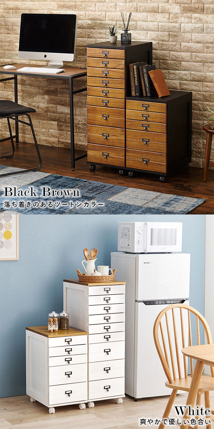 キャスター付きで移動も楽な多段チェスト。引出しにはB4クリアファイルや書類が収納可能。