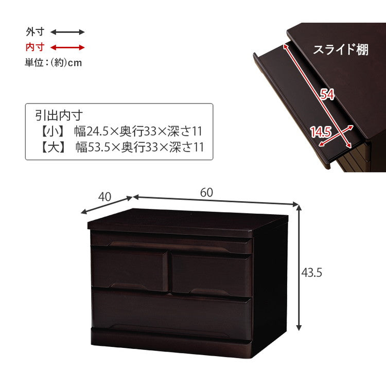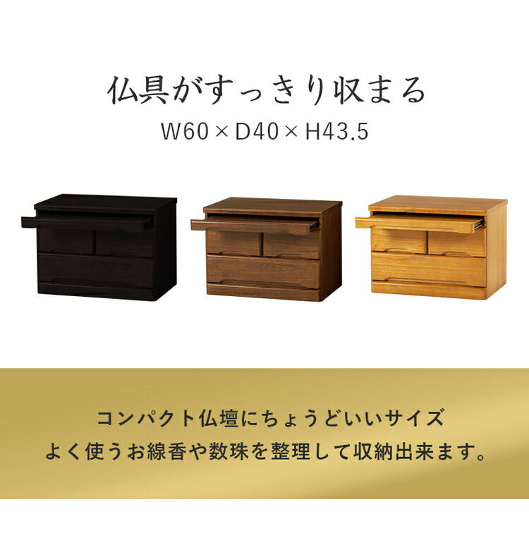 仏壇チェスト 完成品 幅60 奥行40 高さ43.5 仏壇下台 桐製 ミニ仏壇 スライド棚 引出し 仏具 収納 木製 シンプル おしゃれ(代引不可)