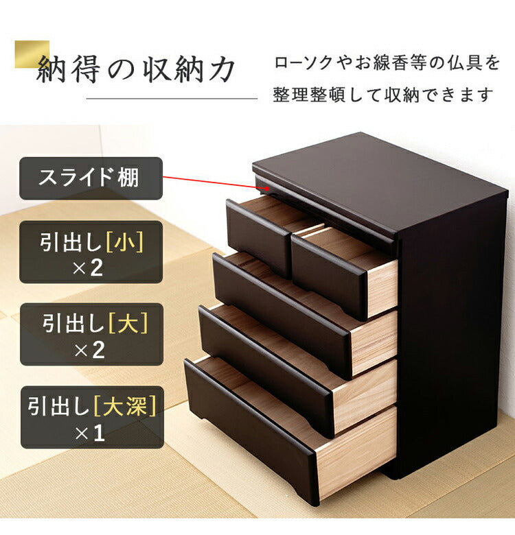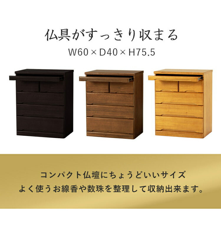 仏壇チェスト 完成品 幅60 奥行40 高さ75.5 仏壇下台 桐製 ミニ仏壇 スライド棚 引出し 仏具 収納 木製 シンプル おしゃれ(代引不可)