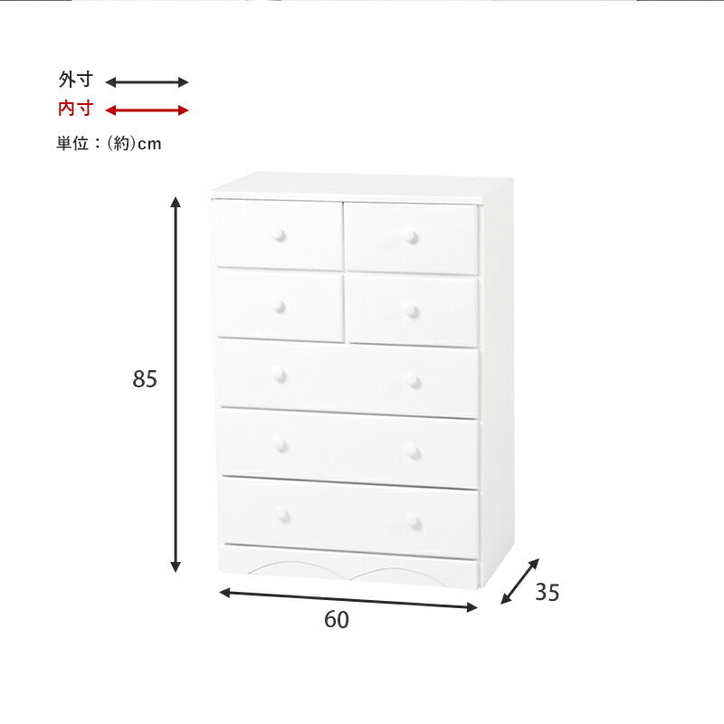 チェスト 白 幅60 引き出し 7杯 完成品 ミドルタイプ 奥行35 高さ85 天然木 ホワイト モノトーン 箪笥 タンス 衣類収納 韓国インテリア おしゃれ(代引不可)