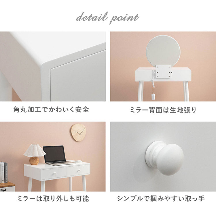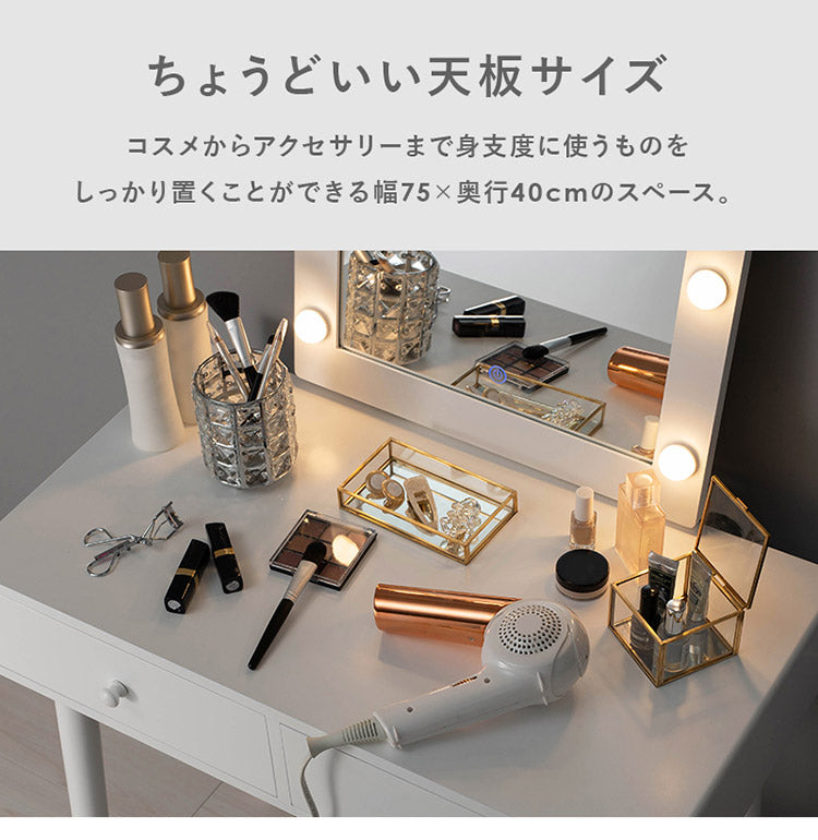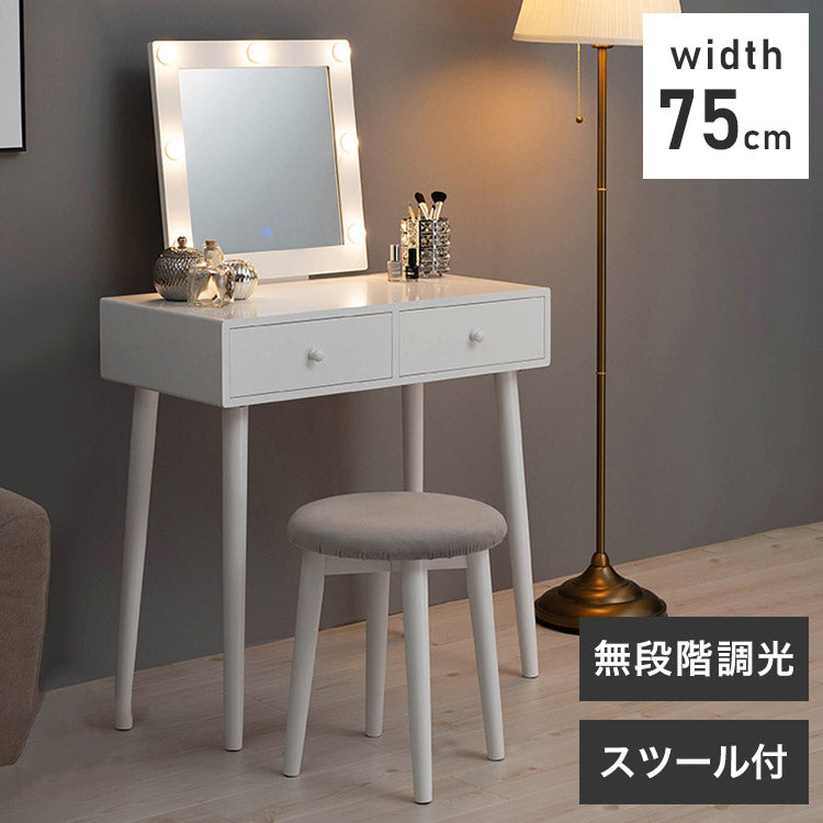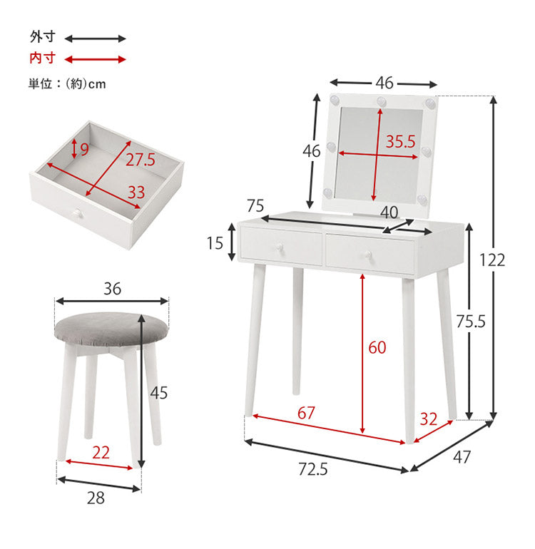 ドレッサー:(約)幅75×奥行47×高さ122×天板高75.5cm、スツール:(約)幅36×奥行36×高さ45cm