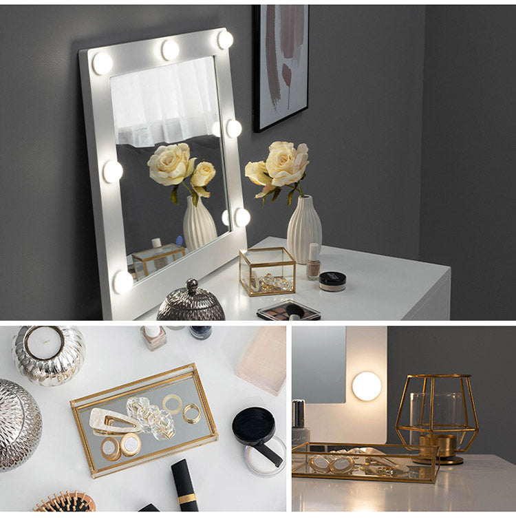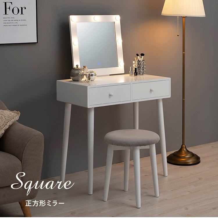 LEDライト付き 女優ドレッサー スツールセット 3色ライト 照明 正方形 ミラー 鏡 メイク 白 ホワイト おしゃれ かわいい 可愛い(代引不可)