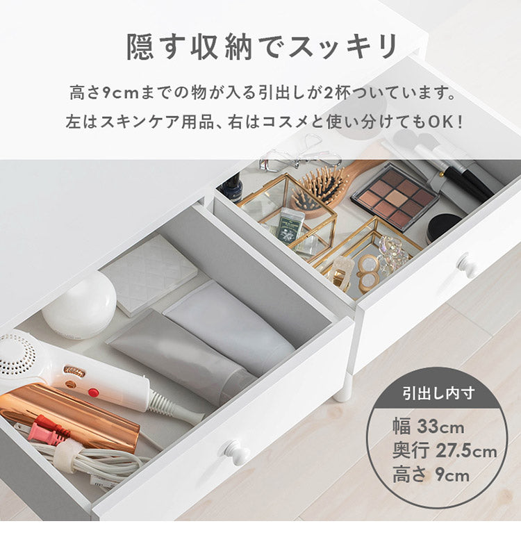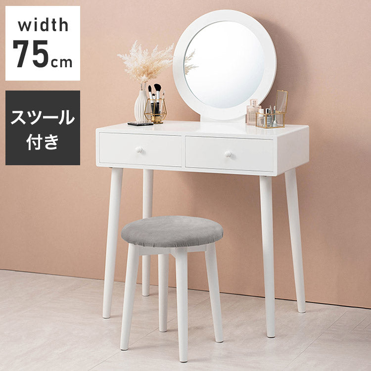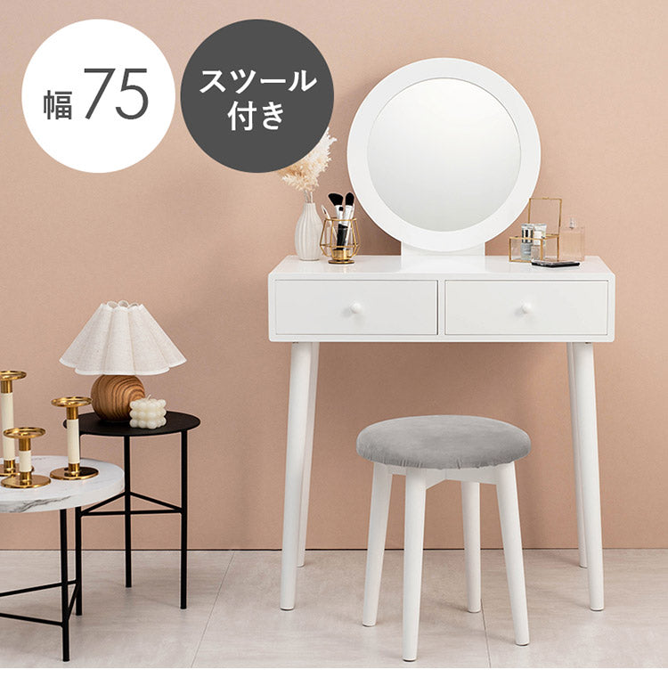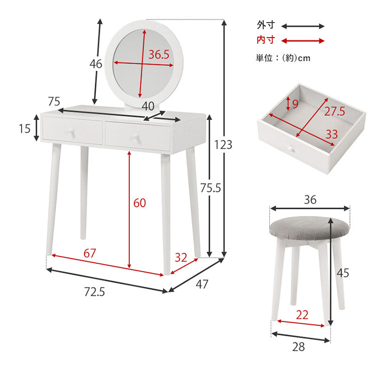 ドレッサー:(約)幅75×奥行47×高さ123×天板高75.5cm、スツール:(約)幅36×奥行36×高さ45cm
