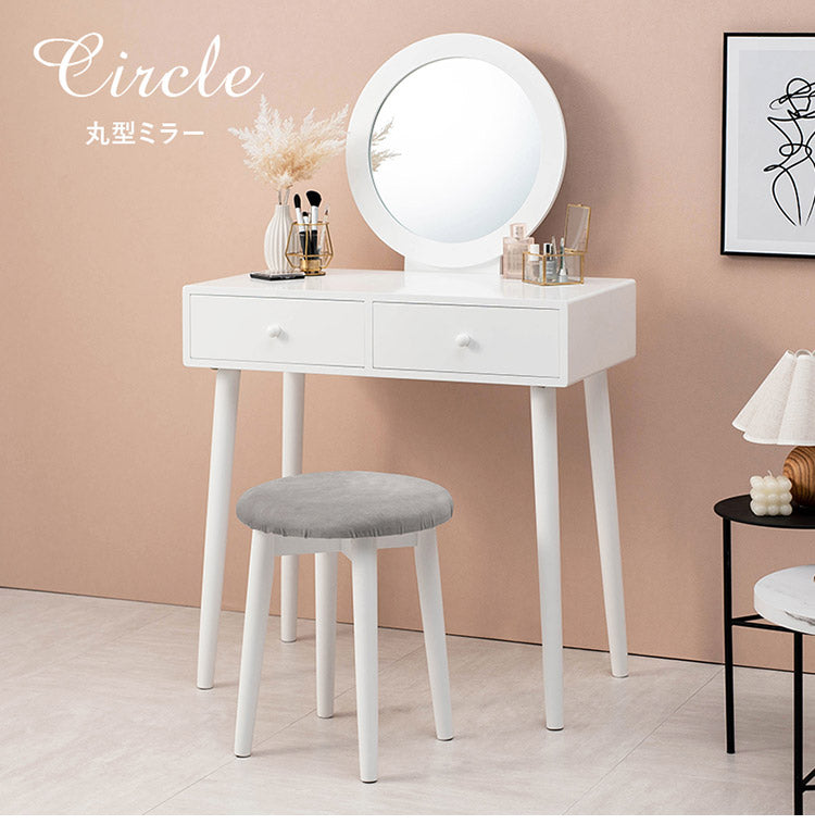 女優ドレッサー スツールセット 丸型 ミラー 鏡 メイク 白 ホワイト おしゃれ かわいい 可愛い ライトなし仕様(代引不可)