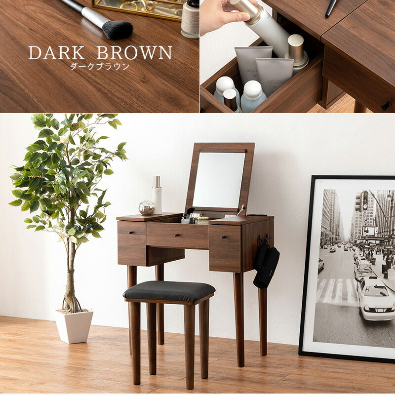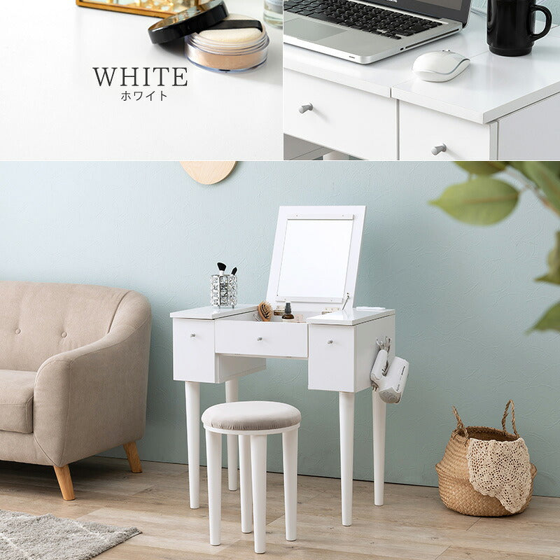 コンパクト デスクドレッサー 幅69 スツール付き 半完成品 2口コンセント 引き出し 収納 1面鏡 一面鏡 鏡台 ミラー テーブル メイク 可愛い かわいい おしゃれ(代引不可)