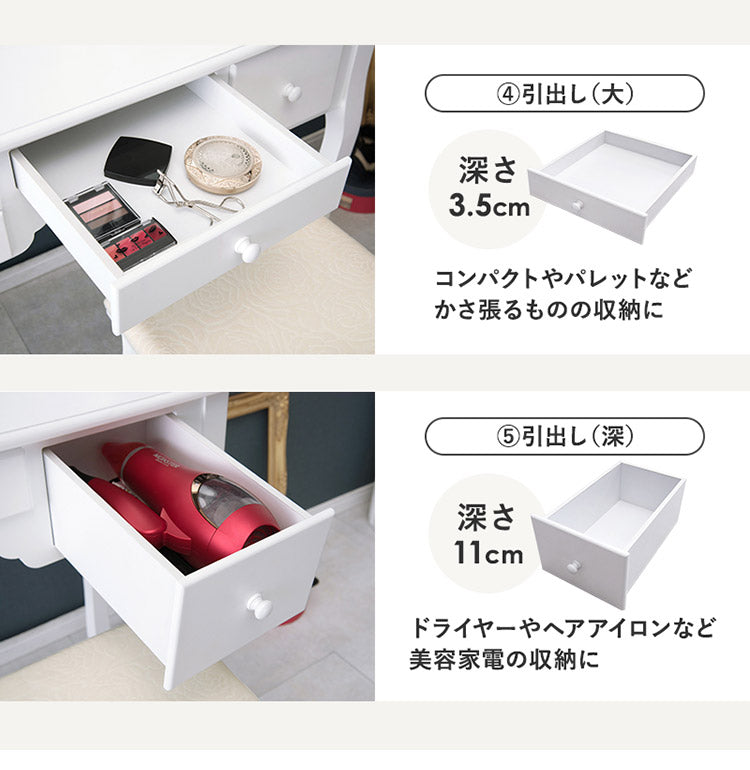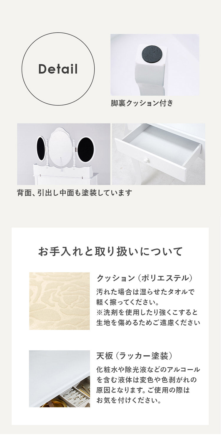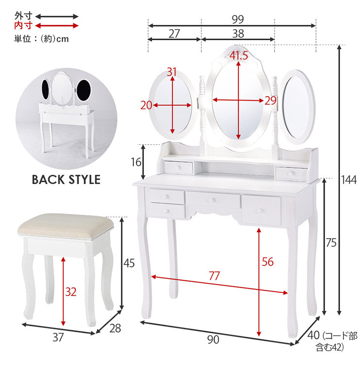 ドレッサー:(約)幅90×奥行42×高さ144cm、スツール:(約)幅37×奥行28×高さ45cm