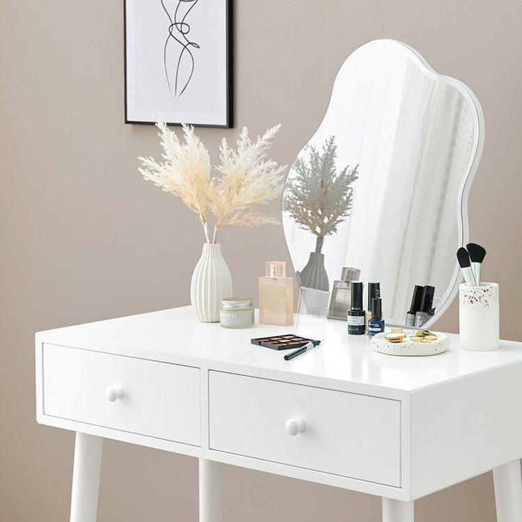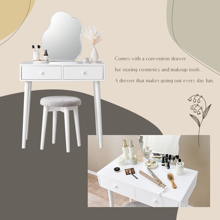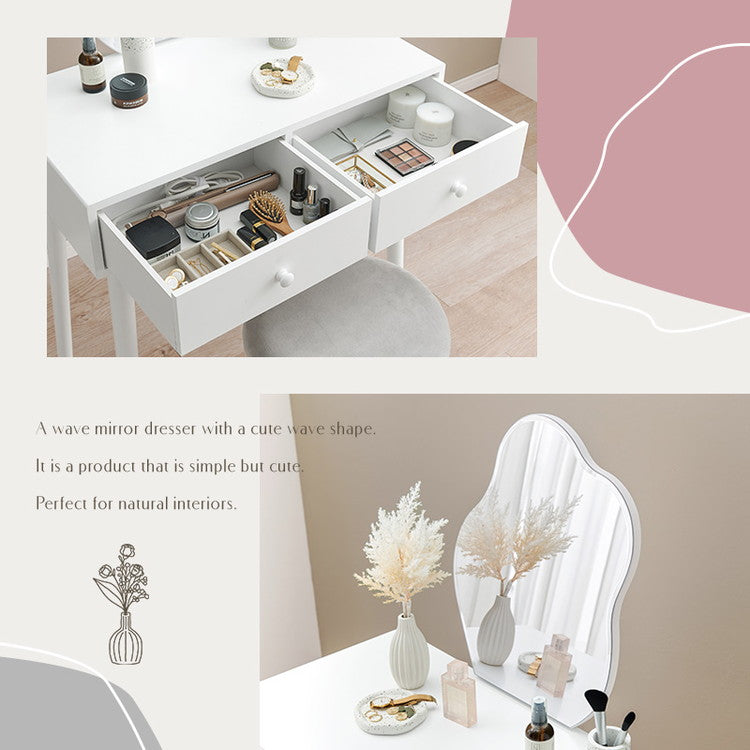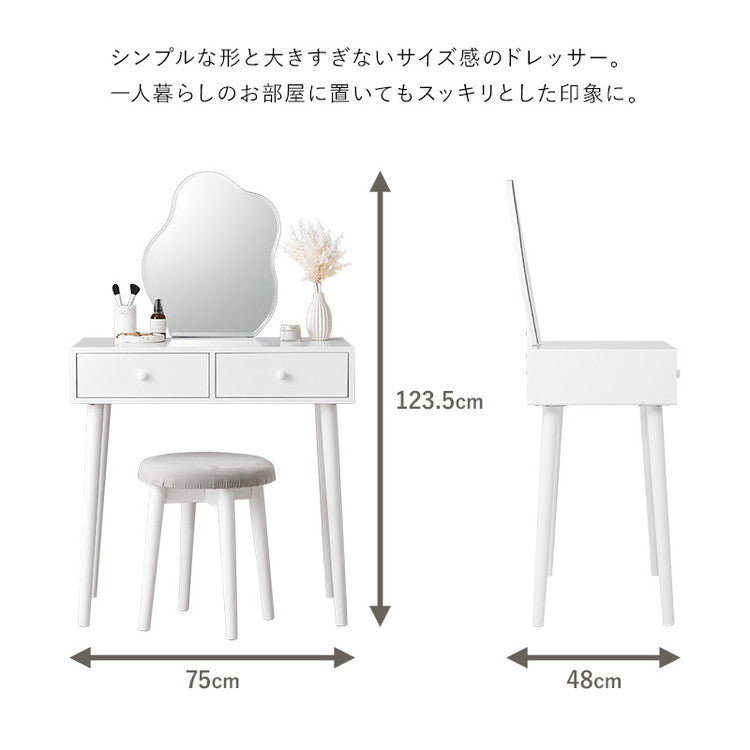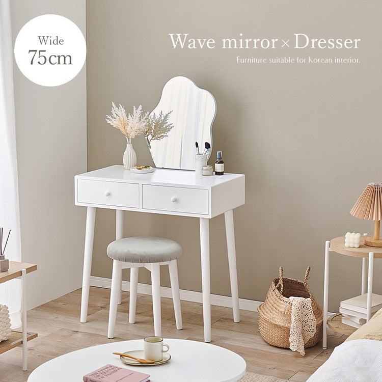 ウェーブミラーのドレッサー 幅75 スツール付き ウェーブミラー 大人可愛い シンプル ドレッサー 白 ホワイト 韓国インテリア 収納付き 鏡 曲線 変形ミラー 可愛い(代引不可)