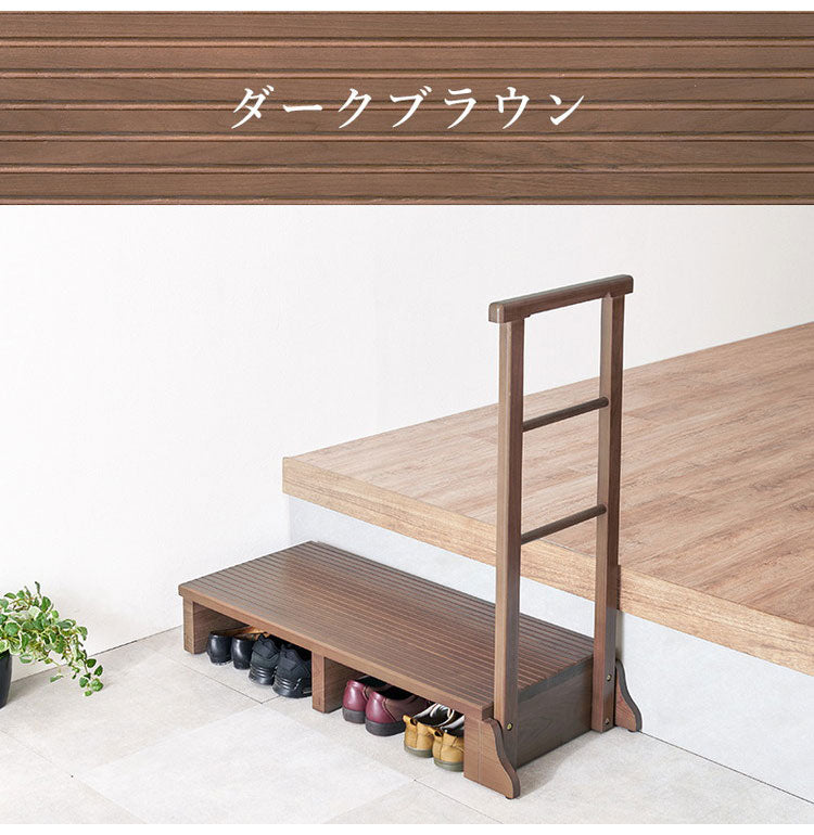耐荷重150kg 手すり付き玄関踏み台 片側手すり 幅97cm 天然木 踏み台 頑丈 踏み台 ステップ 玄関 台 玄関踏み台 玄関ステップ 段差 昇降 玄関収納 つかまり 手すり(代引不可)