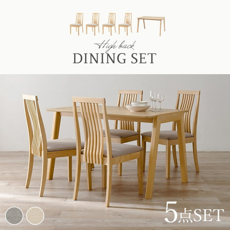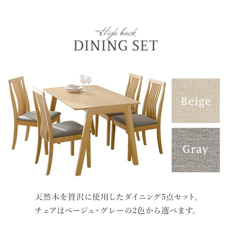 天然木を贅沢に使用したダイニング5点セット。チェアのゆるやかな背面デザインが空間に自然と溶け込みます。