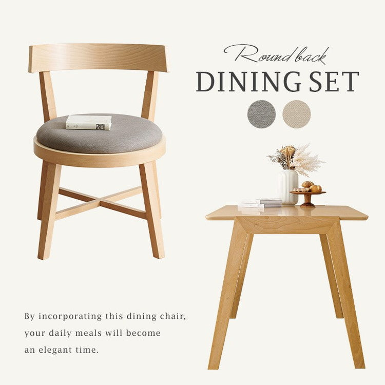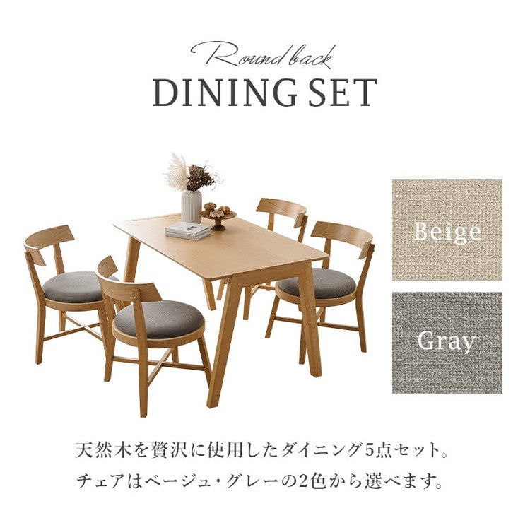 天然木を贅沢に使用したダイニング5点セット。チェアの丸みを帯びた愛らしいシルエットが空間を柔らかに演出します。