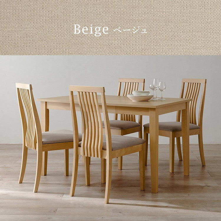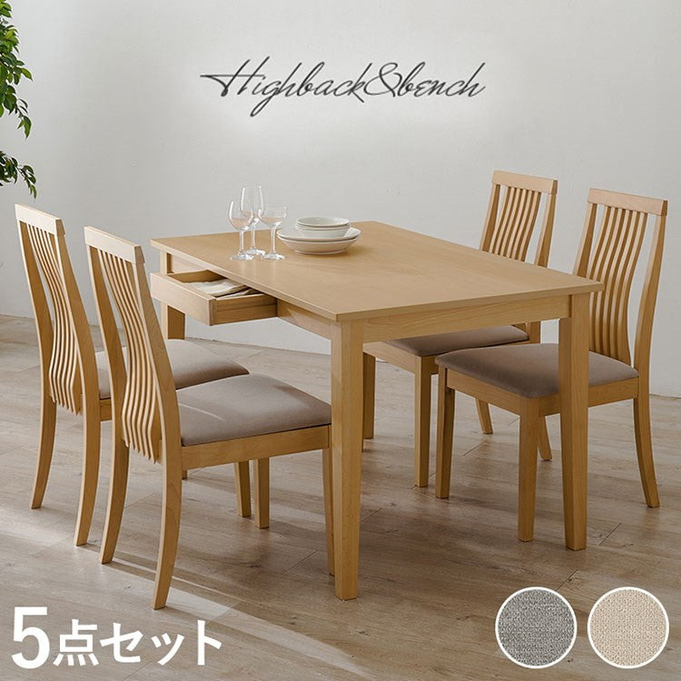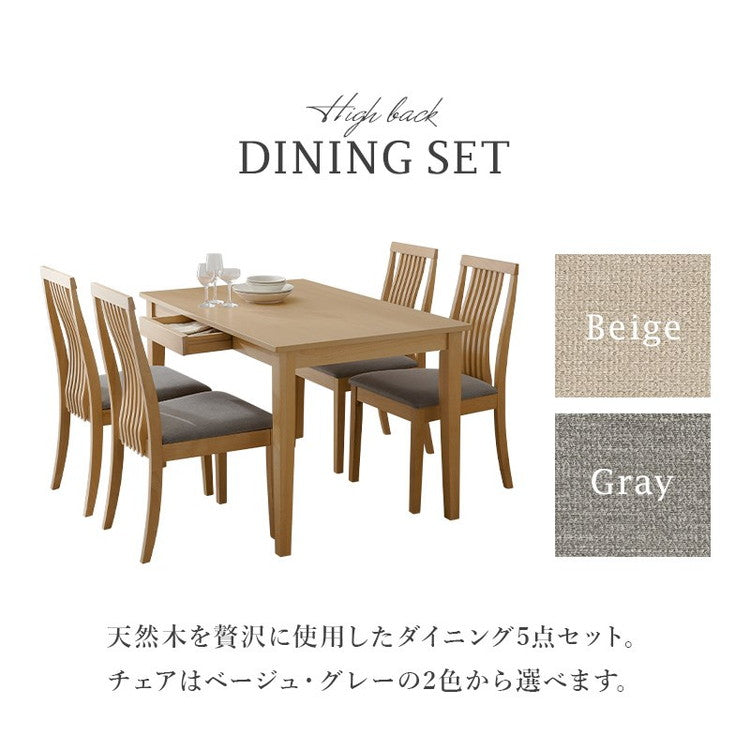 天然木を贅沢に使用したダイニング5点セット。チェアのゆるやかな背面デザインが空間に自然と溶け込みます。テーブルは便利な引き出し付き。