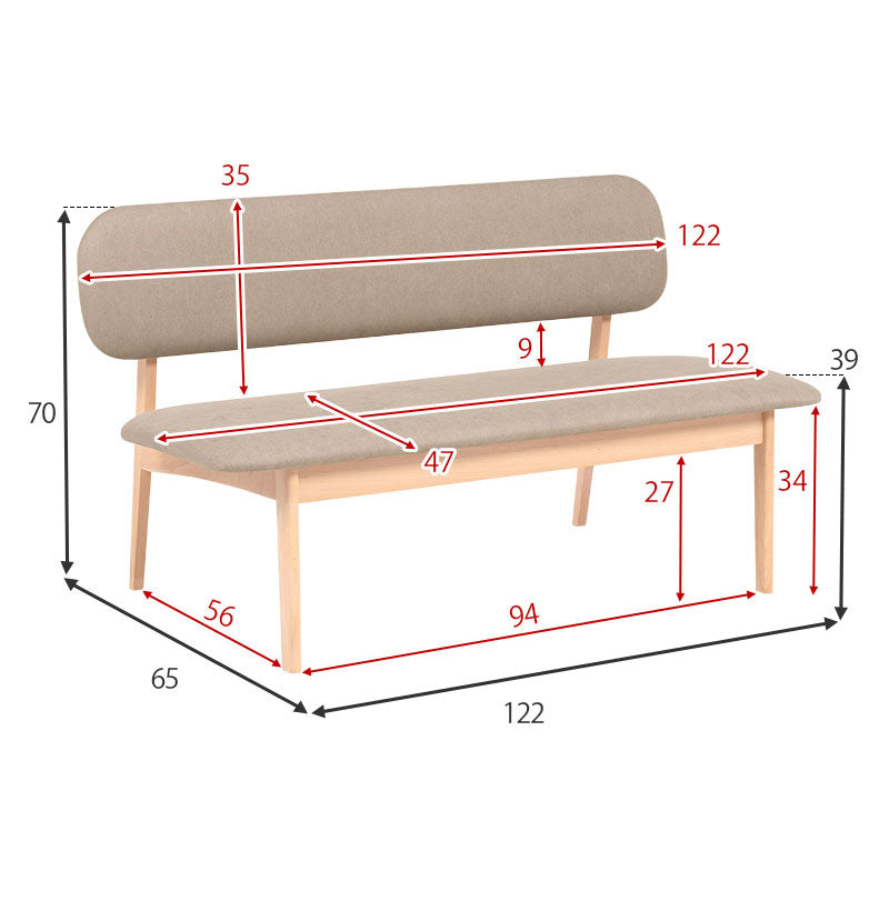 主材:天然木(ビーチ材)、天板:天然木化粧繊維板(ビーチ突板)、張地:ポリエステル、クッション材:ウレタンフォーム