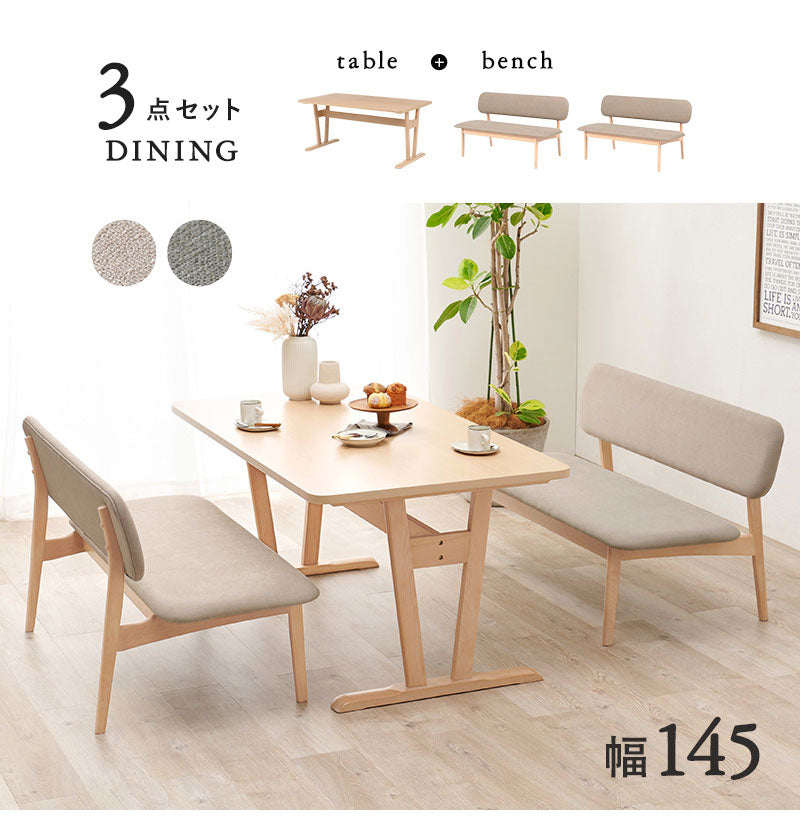 ダイニング3点セット ゆったり座面 ロータイプ ダイニングテーブル ダイニングベンチ2脚 幅145 天然木 ビーチ材 椅子 イス リビング シンプル 北欧 モダン おしゃれ(代引不可)