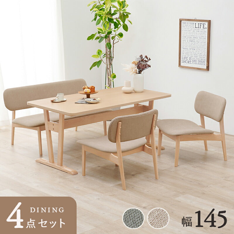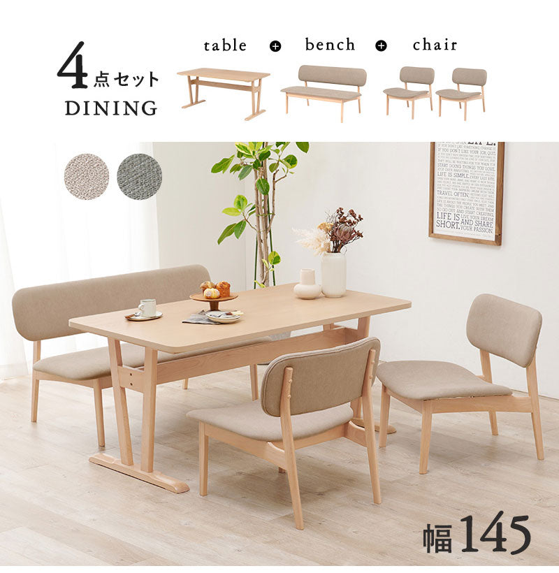 ダイニング4点セット ゆったり座面 ロータイプ ダイニングテーブル ダイニングベンチ・チェア2脚 幅145 天然木 ビーチ材 椅子 イス リビング シンプル 北欧 モダン おしゃれ(代引不可)