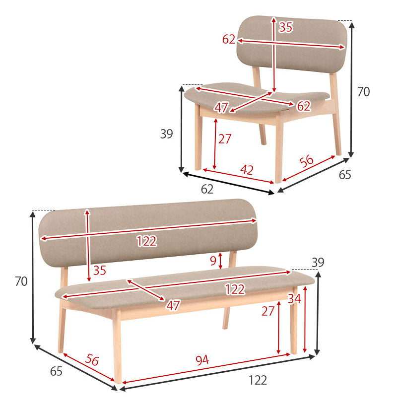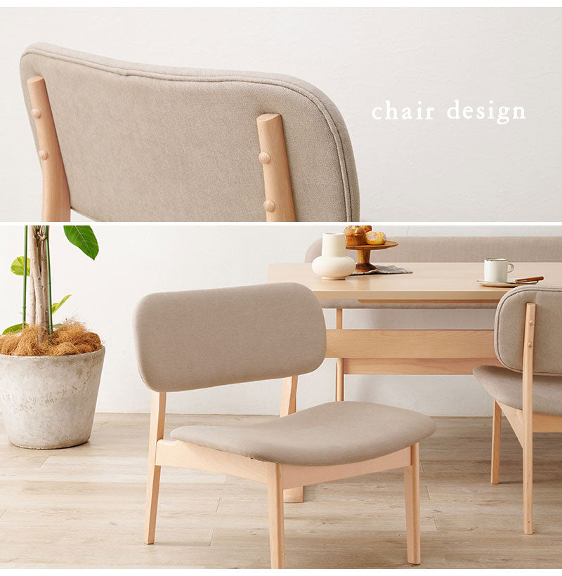 主材:天然木(ビーチ材)、天板:天然木化粧繊維板(ビーチ突板)、張地:ポリエステル、クッション材:ウレタンフォーム