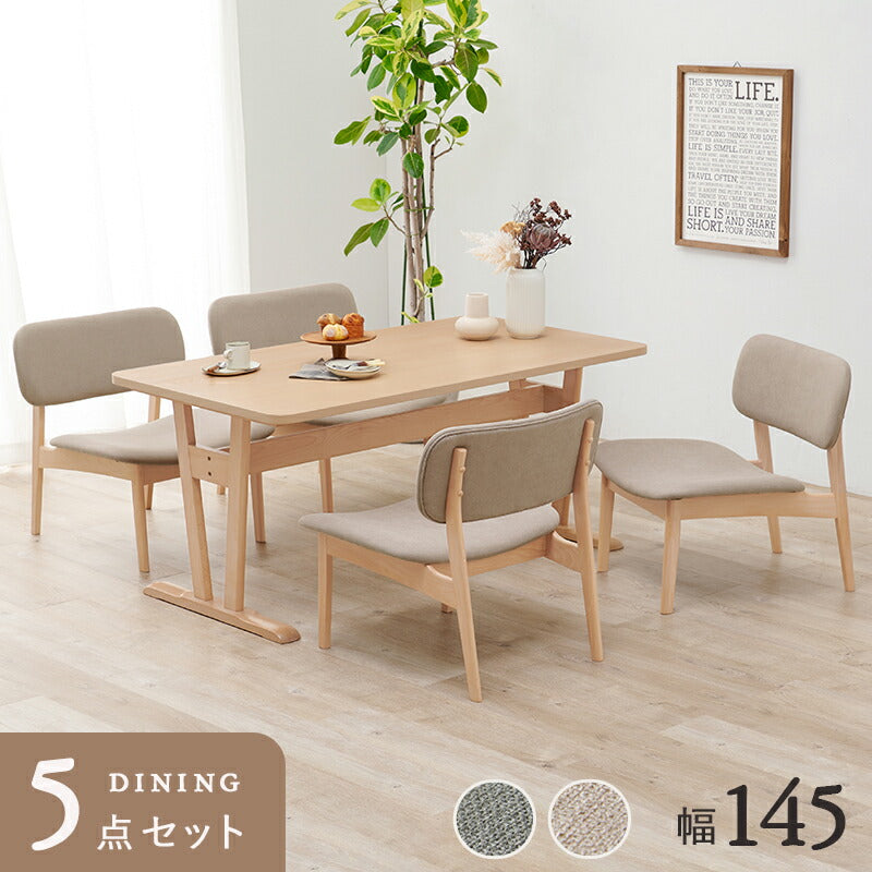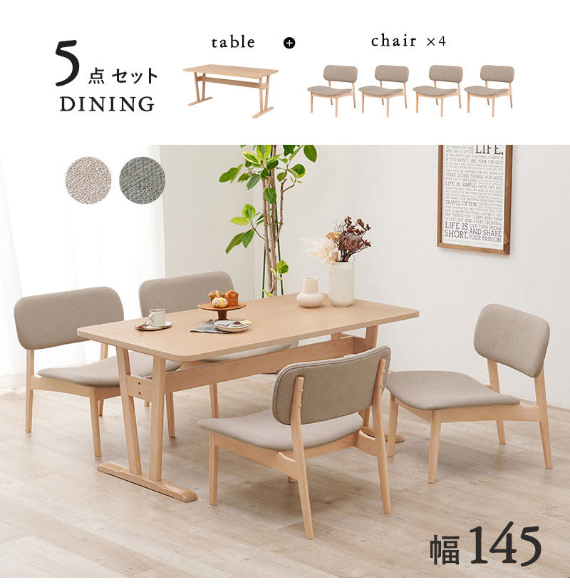 ダイニング5点セット ゆったり座面 ロータイプ ダイニングテーブル ダイニングチェア4脚 幅145 天然木 ビーチ材 椅子 イス リビング シンプル 北欧 モダン おしゃれ(代引不可)